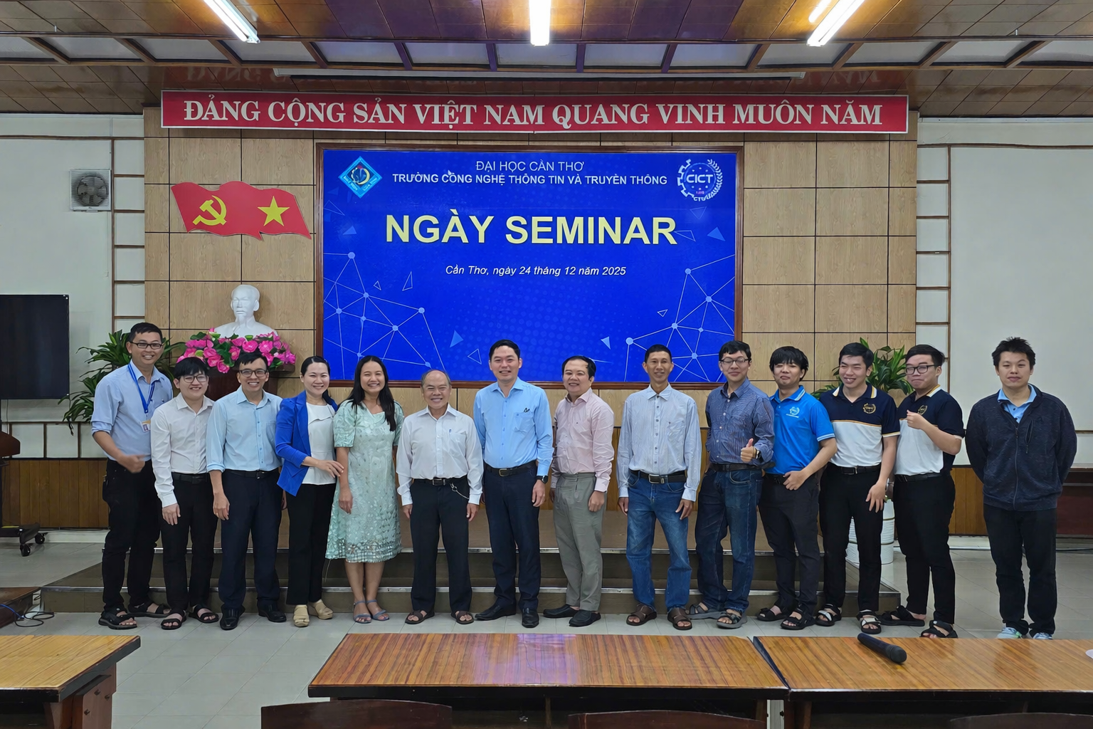 Ngày 24/12/2025, tại Hội trường Trường Công nghệ Thông tin và Truyền thông (CNTT-TT) đã diễn ra Ngày Seminar Trường CNTT-TT năm 2025 với nhiều báo cáo khoa học và chuyên đề chuyên sâu, thu hút sự tham gia của giảng viên, nghiên cứu sinh và các khách mời trong lĩnh vực công nghệ và chuyển đổi số.